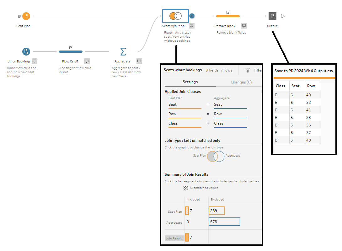 #PreppinData 2024 week covered using join types, in this case to understand which seats aren’t chosen given a seating plan and booking data.